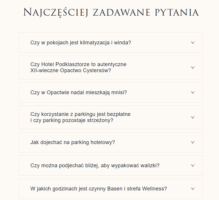 Rys. 2. Przykład sekcji FAQ na stronie hotelu, który można wykorzystać do napędzania AI danymi.